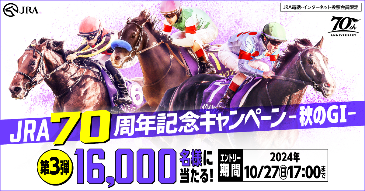 JRAが70周年ということで、総計152,000名様に何かが当たるキャンペーンを開催!