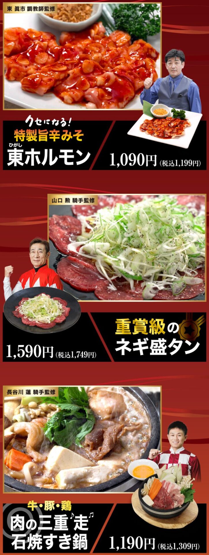 騎手や調教師が料理を監修し、新しいメニューを考えました。