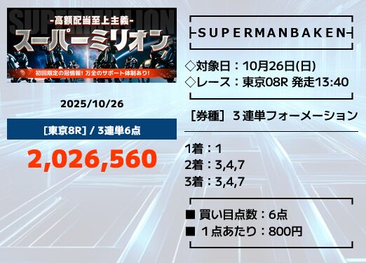 スーパーマンバケンは無駄なレースは切り捨て、少点数で7桁配当だけを狙う!